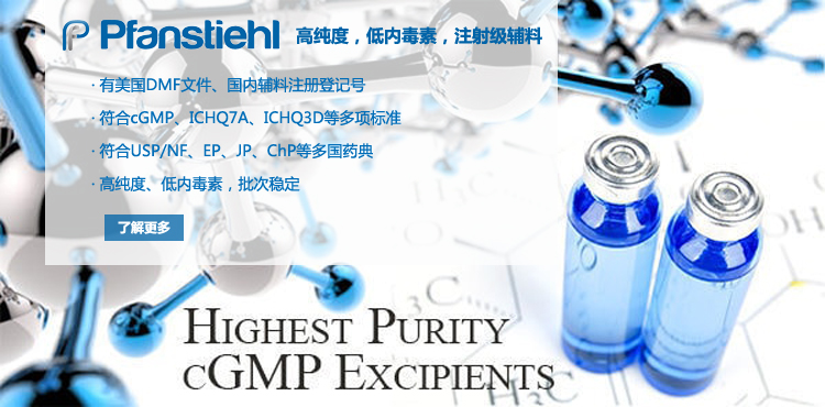“熱烈祝賀Pfanstiehl的注射級甘氨酸Glycine(G-140)喜獲CDE登記號F20250000403, 這是Pfanstiehl產品獲得的第18個CDE登記號!”甘氨酸在醫藥輔料制劑中應用廣泛,, 可作為緩沖劑,增溶劑,穩定劑等,具有諸多優勢。Pfanstiehl秉承一貫高品質理念,為滿足全球生物制藥行業對于高品質甘氨酸的需求,隆重推出的注射級甘氨酸Glycine (G-140), 具有超高純度,超低內毒素,超低金屬殘留的特點,單獨檢測29種金屬離子,并且新增DNA,RNA,DNA酶,RNA酶和脂肪酶,亞硝酸鹽等多項質量指標的檢測,符合多國藥典規定(USP, EP, BP, JPE, ChP),可用于生物治療性藥物和疫苗的生產。產品信息:· 產品名稱:Glycine, High Purity, Low Endotoxin, Low Metals, USP, EP, BP, JPE, ChP (G-140)· 中文名稱:甘氨酸· 分子式:C2H5NO2· 分子量:75.07 g / mol· CAS號:56-40-6· 產品貨號:G-140產品特點: · 超高純度,超低內毒素,超低微生物含量,超低金屬雜質殘留· 質量指標新增DNA,RNA,DNA酶,RNA酶,脂肪酶和亞硝酸鹽檢測· 符合多國藥典:USP, EP, BP, JPE, ChP· 符合ICH Q3D標準· 符合GMP標準· 已獲DMF和CDE登記號 產品應用:· 緩沖劑· 穩定劑· 增溶劑如果您對Pfanstiehl注射級別Glycine G-140感興趣,歡迎聯系Pfanstiehl 中國區代理商北京西美杰科技有限公司獲得如下詳細的產品概況說明文件和測試樣品。Pfanstiehl Inc.最新產品系列如下,歡迎聯系北京西美杰科技有限公司獲取100g裝免費樣品。北京西美杰科技有限公司為Pfanstiehl中國代理,為客戶提供完善的技術支持與售后服務。歡迎撥打西美杰客服電話400-050-4006或者登陸網站www_xmjsci_com.allzy666.com了解更多信息。 更多>